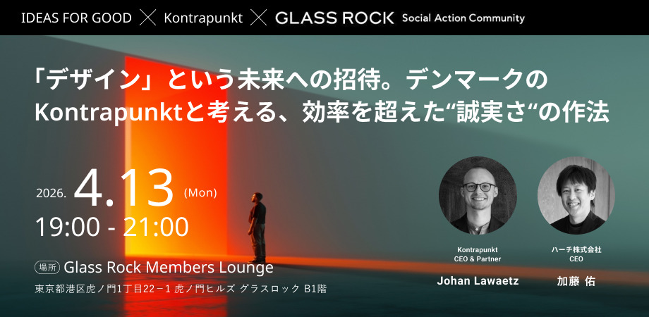 【IDEAS FOR GOOD】4/13@東京・虎ノ門「『デザイン』という未来への招待。デンマークのKontrapunktと考える、効率を超えた“誠実さ“の作法」を開催します