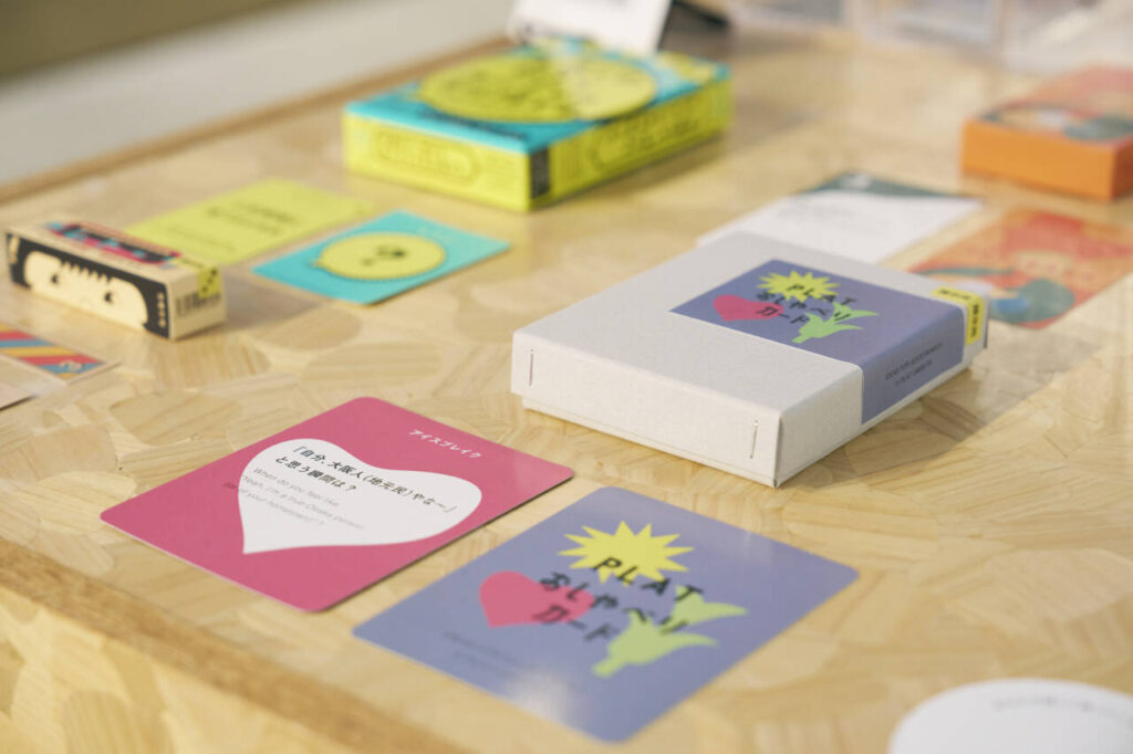 PLAT UMEKITAに集まる有志のメンバーで制作した、ウェルビーイングをテーマにした対話カードです。「アイスブレイク」「ウェルビーイングの探求」「エシカル大喜利」の3つのカテゴリに分かれ、全部で43枚の問いを収録しています。初対面の人とも話しやすい質問、自分自身を深掘りできる問い、思わず笑ってしまうようなユニークな問いまで。このカードを通して、“自分にとってのウェルビーイング”を見つめるきっかけになればうれしいです。