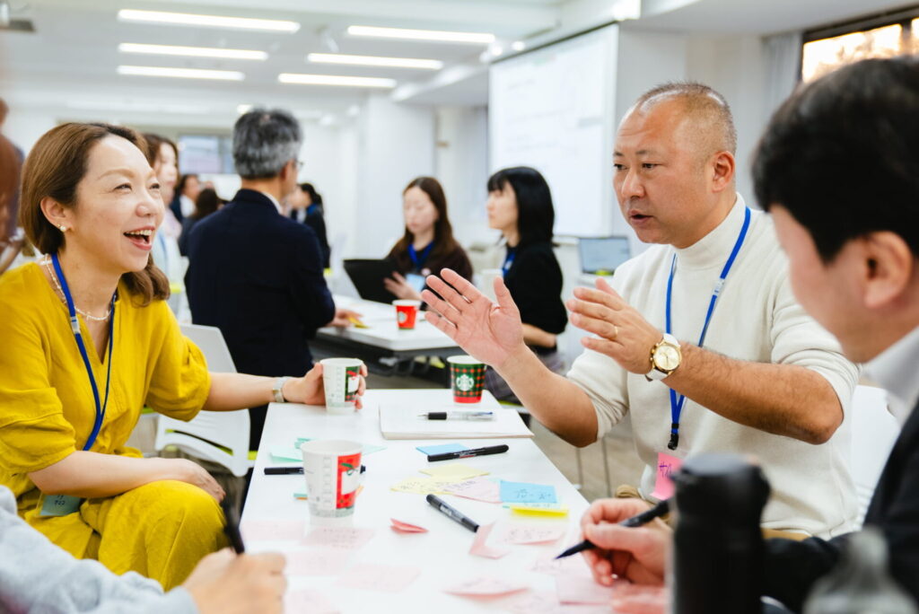 最初の問いは「AI時代、未来の共創はどのような可能性があるだろうか?」。各グループからは、AIが言語の壁や知識の格差をなくし「共創の土台を作ってくれる」といったポジティブな意見が上がる一方で、「答えを急ぎすぎることでプロセスが軽視されるのでは」「身体性を伴うリアルな体験の価値が相対的に高まる」といった、AIと人間との関係性を深く洞察する議論が交わされました。