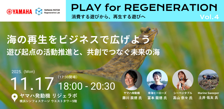 • 【Circular Yokohama】11/17開催 ヤマハ発動機のイベント「海の再生をビジネスで広げよう。遊び起点の活動推進と、共創でつなぐ未来の海|PLAY for REGENERATION Vol.4」に協力します
